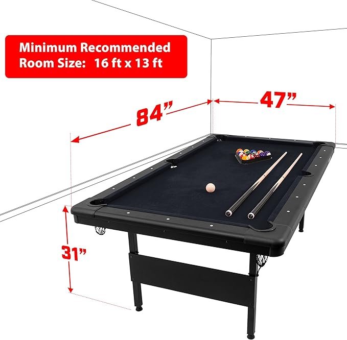 GoSports 6, 7, or 8 ft Billiards Table – Portable Pool Table – Includes Full Set of Balls, 2 Cue Sticks, Chalk and Felt Brush; Choose Size and Color